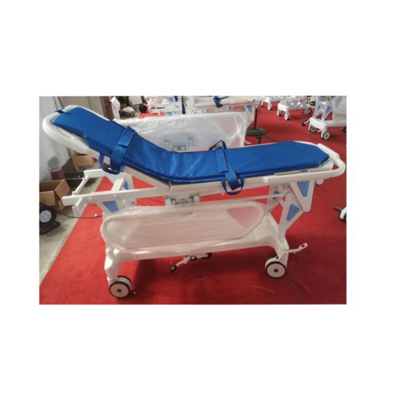 Height Adjustable Hospital Emergency Trolley With Backrest And IV Pole Images |